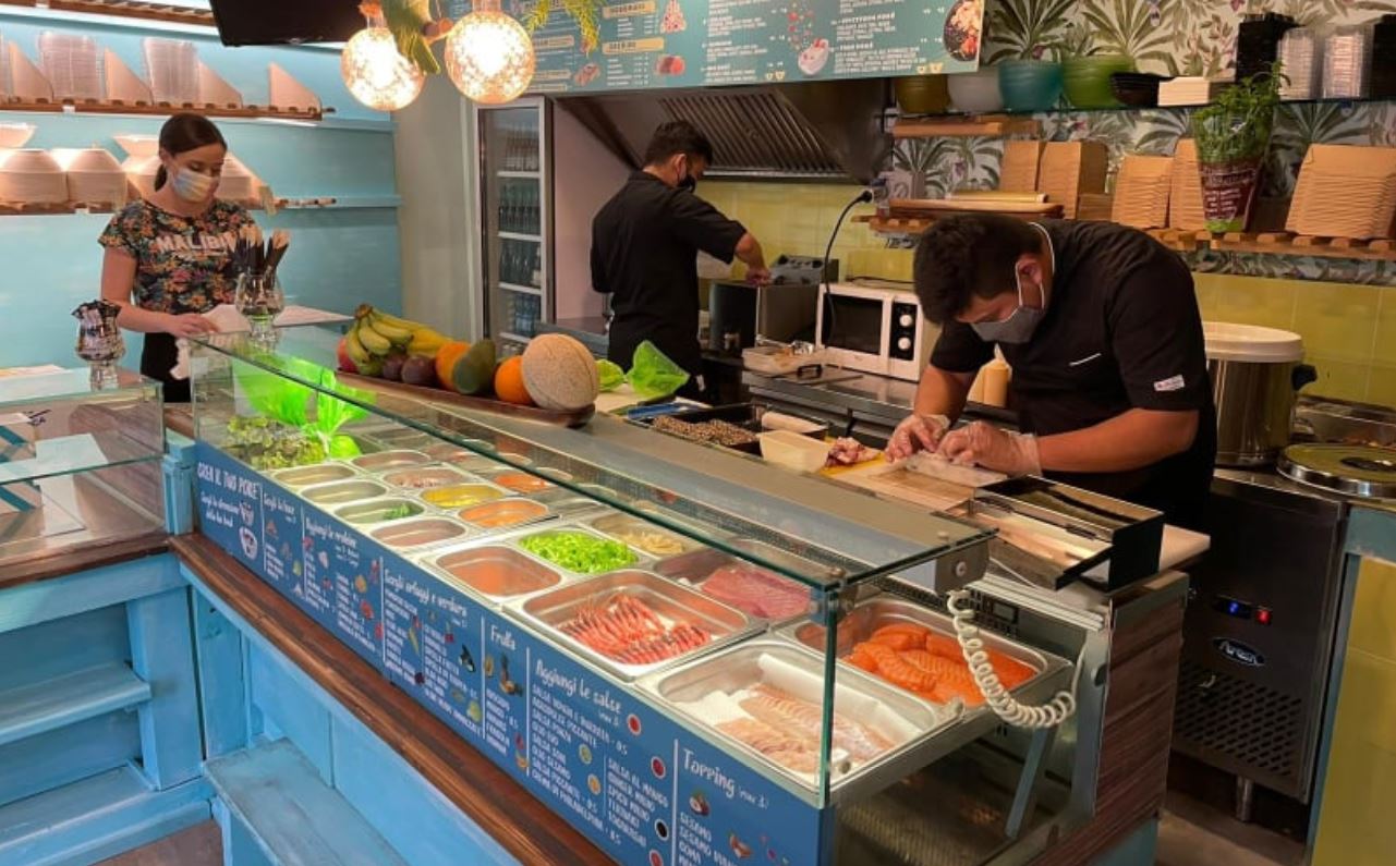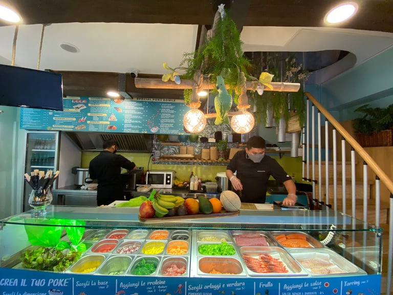 La Pokeria prepara piatti della tradizione hawaiana. Le poké bowls, sono piatti pronti in pochi passaggi, facili da trasportare, perfetti per un pasto veloce da consumare sia sul posto che con il pratico servizio takeaway, adatto a tutti i palati, perché ciascuno può scegliere come prepararlo.