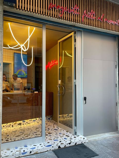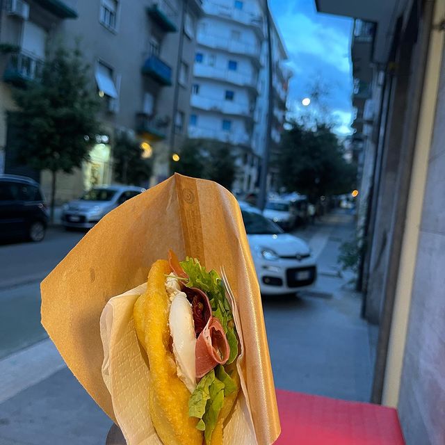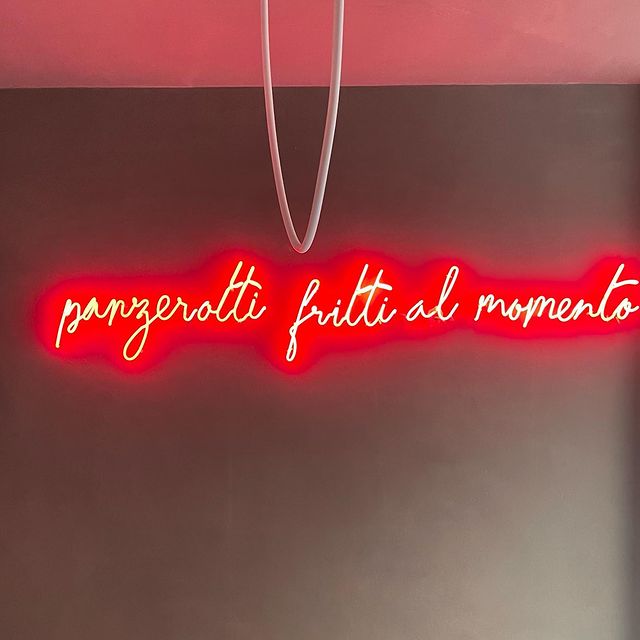 Il nostro locale è molto piccolo, facciamo solo asporto, nell’attesa di avere il permesso dal comune per occupare un piccolo spazio davanti alla nostra attività, giusto per poggiare la bibita e consumare il panzerotto caldo davanti al locale.