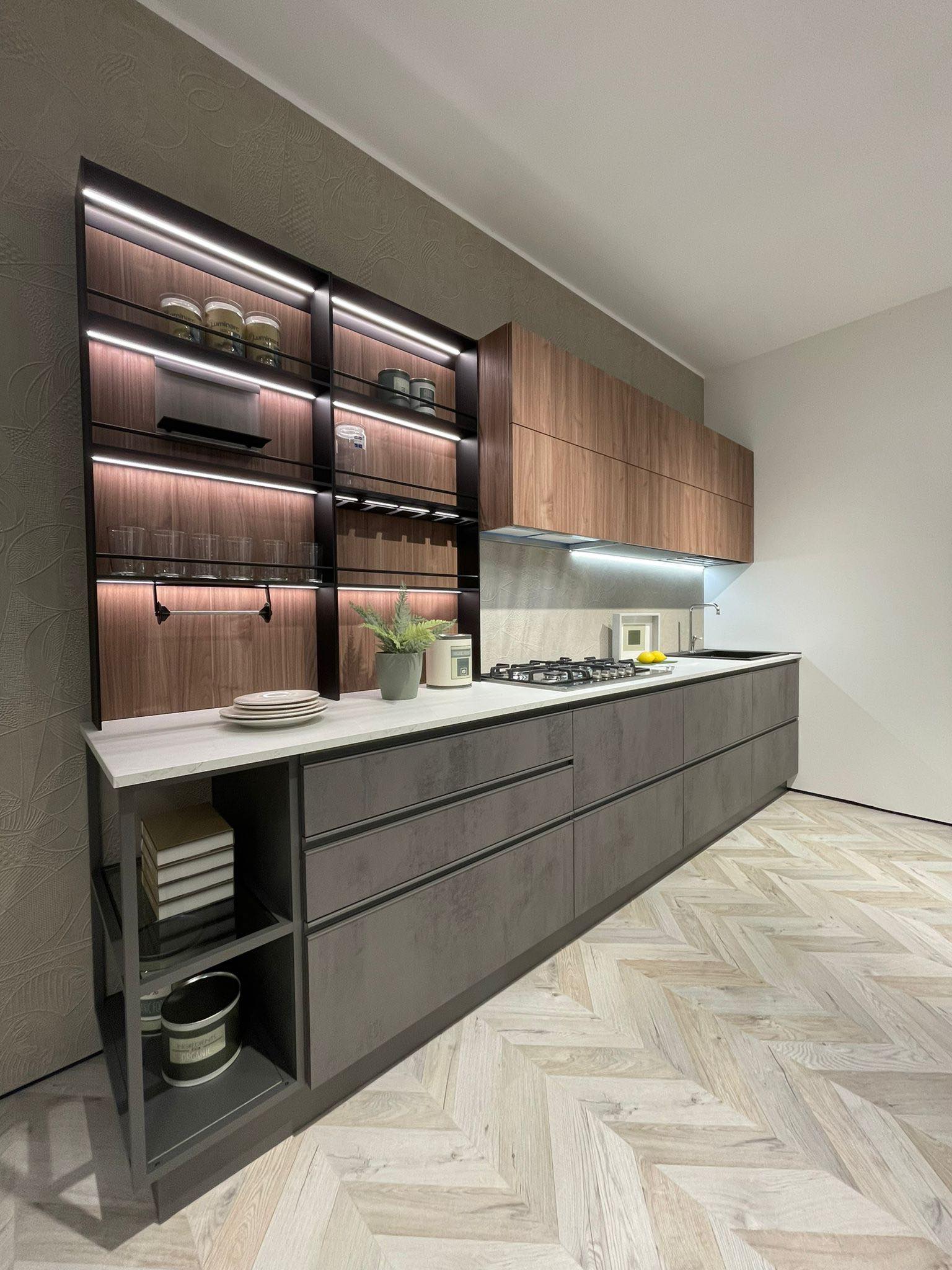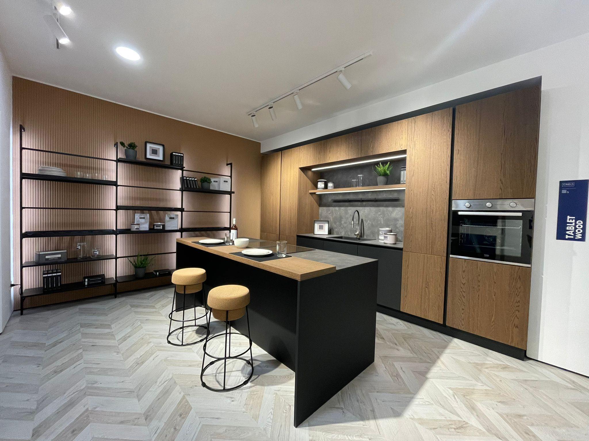 Uno spazio espositivo di 250 mq innovativo, moderno e all’avanguardia, con personale altamente qualificato, con in esposizione i prestigiosi modelli del brand: tra questi immancabile la Tablet Wood dove il calore dell’impiallacciato “ad eccimeri” si abbina alla freschezza delle ante laccate UV lucide. Tinte delicate e armoniose; dove il living è perfettamente inserito nella composizione con soluzioni innovative come il nuovo piano estraibile “SKIP-L” della serie GENIUS-K.