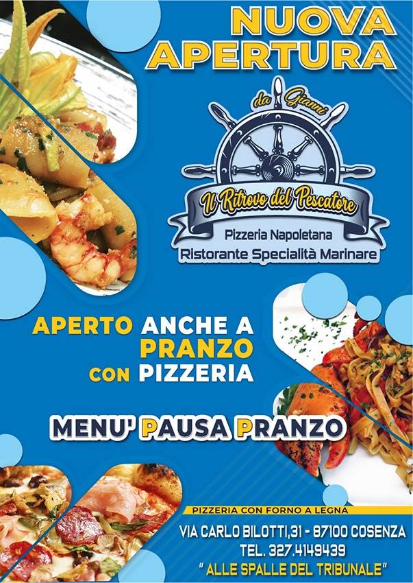 Inaugura questa sera a Cosenza, in Via Carlo Bilotti n.31 (alle spalle del tribunale), il ristorante/pizzeria ” Da Gianni – Il Ritrovo del Pescatore”.
