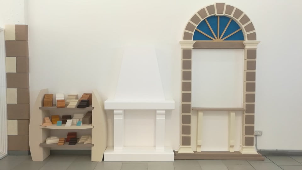 Edilizia: capitelli, casseforti, colonne, archi, soffitti, controsoffitti, cornici e decorazioni sia per interni che per esterni. Arredamento: allestimenti per negozi e arredamenti sia interni che esterni. Lavorazioni 3D e 2D, insegne 3D e loghi.
