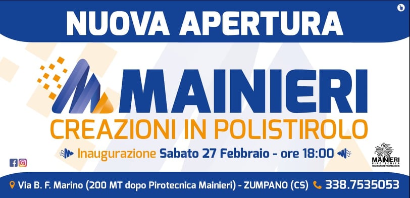 La nuova azienda “Mainieri Creazioni in Polistirolo” inaugura oggi alle ore 18 in Via Beato F. Marino a Zumpano alle richieste dei suoi clienti con la lavorazione del polistirolo in tutti i settori.