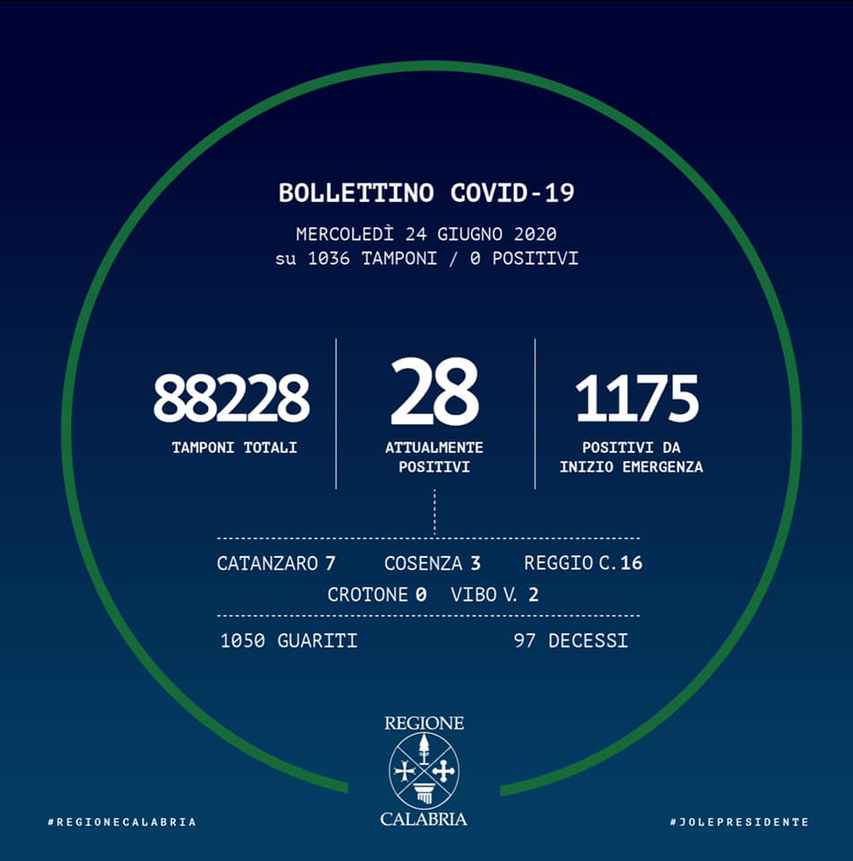 BOLLETTINO DELLA REGIONE CALABRIA DEL 24/06/2020