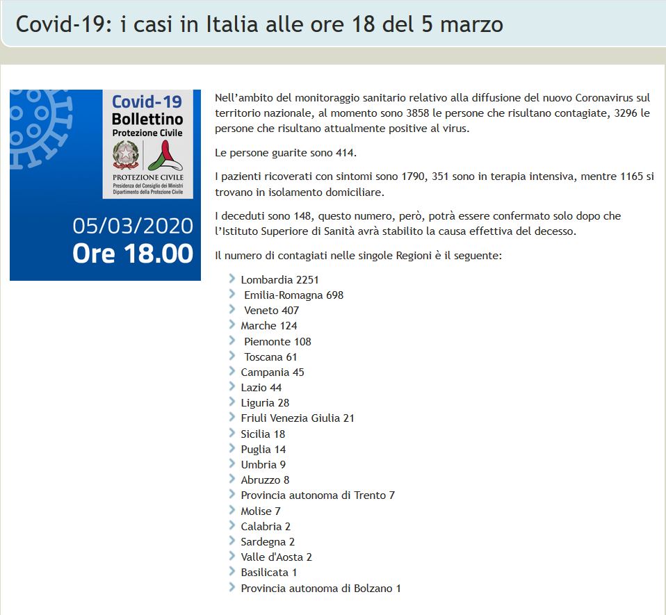 Questo lo schema ufficiale pubblicato dal Ministero della Salute alle ore 18 di oggi: