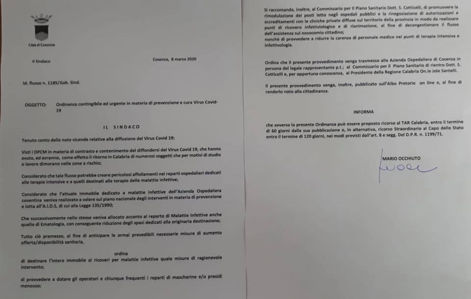 Pubblicato poco fa dal sindaco di Cosenza: