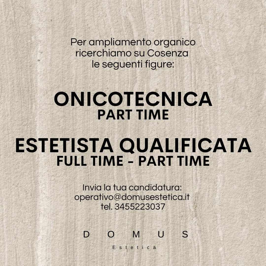 “Il centro di estetica avanzata “Domus Estetica”, sito in via Montesanto 70, a Cosenza, ricerca, per ampliamento organico, le seguenti figure professionali: