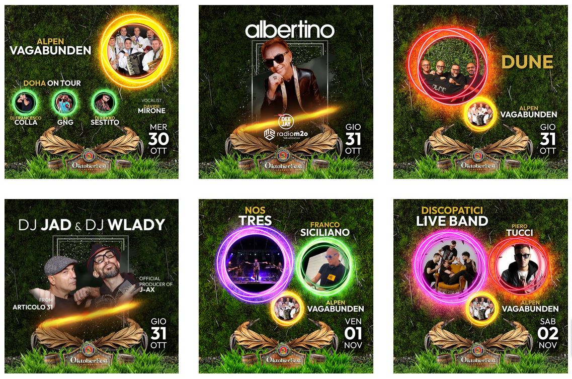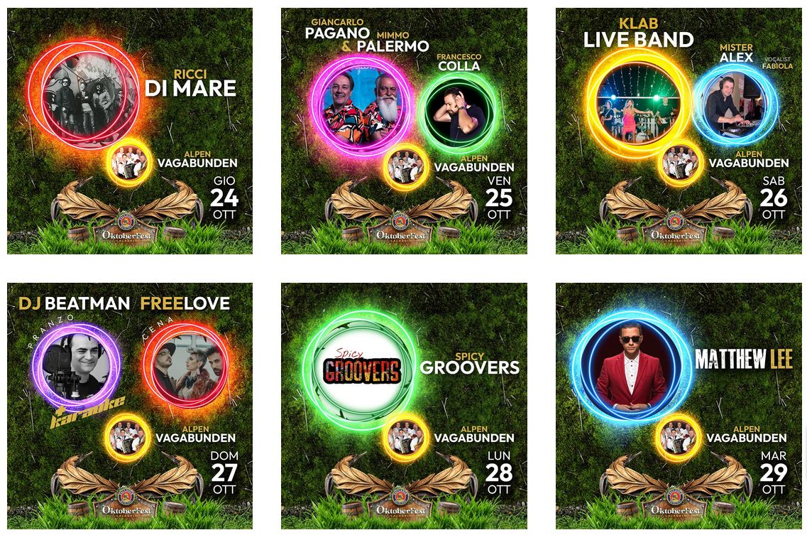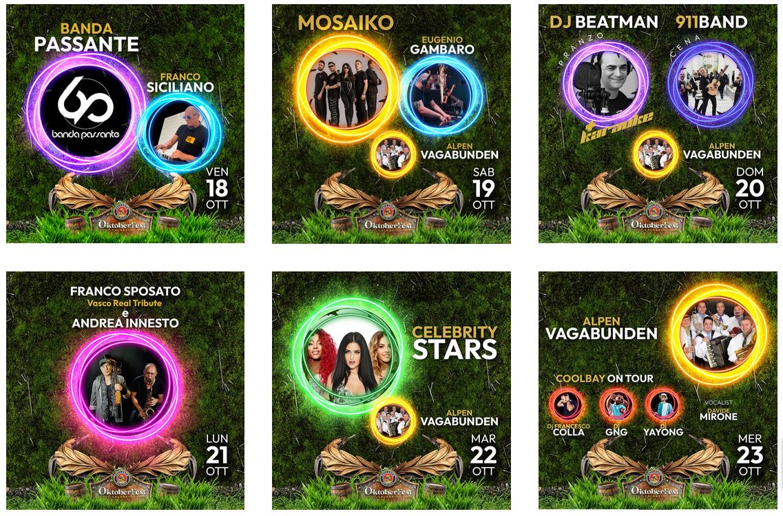 E allora prendete carta e penna e segnatevi queste date. Si parte venerdì 18 ottobre con la Banda Passante e a seguire Franco Siciliano Dj. Sabato 19 ottobre i Mosaiko e a seguire dj Eugenio Gambaro. Il pranzo della domenica 20 ottobre sarà animato da Dj Beatman con il Karaoke. A cena invece si esibirà il gruppo dei 991 Band.