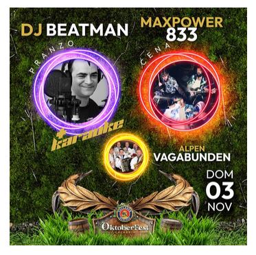 Prendiamo un attimo di respiro e veniamo alla serata di Venerdi 1 novembre. Una serata dove ci sarà l’esibizione dei Nos Tres e a seguire Franco Siciliano dj. Sabato 2 novembre i Discopatici Live Band e a seguire dj Piero Tucci che è anche lo speaker del San Vito Marulla. Si conclude il tutto con il pranzo della domenica 3 novembre accompagnato ancora una volta dalla musica di Dj Beatman piu Karaoke e a cena Max Power con il tributo degli 883. Che dire? L’Oktoberfest Calabria è uno spettacolo senza fine.