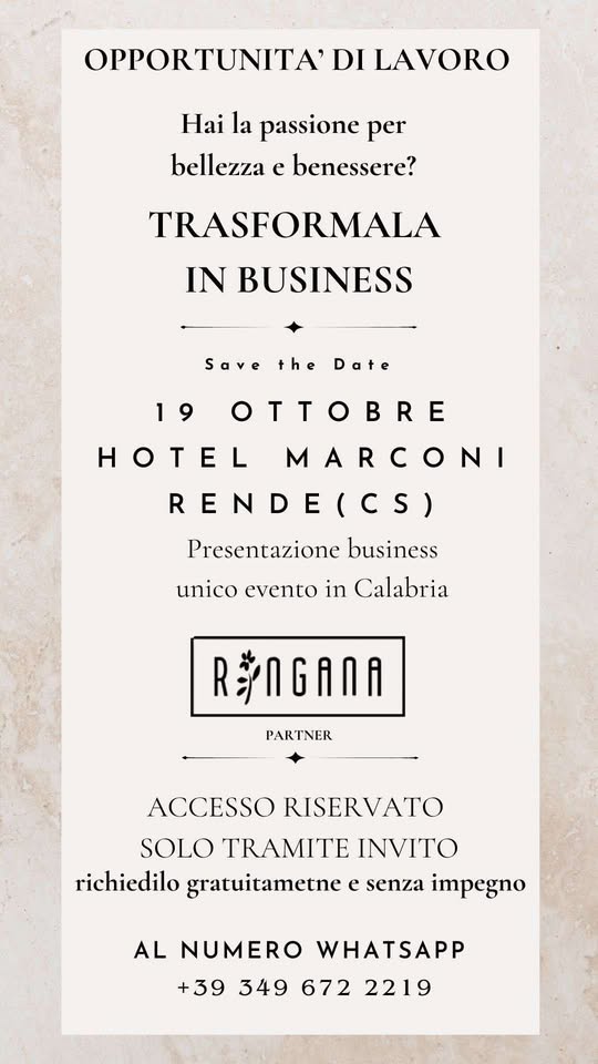Riceviamo segnalazione di questo evento che si svolgerà domani a Rende, organizzato “da un’azienda austriaca che vuole puntare molto sulla Calabria …“