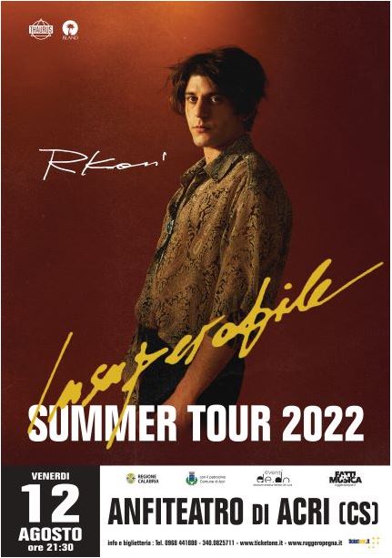 E’ partita subito forte la prevendita per l’unico concerto in Calabria di Rkomi, programmato per il prossimo 12 agosto alle ore 21.30 all’ Anfiteatro di Acri (Cosenza)