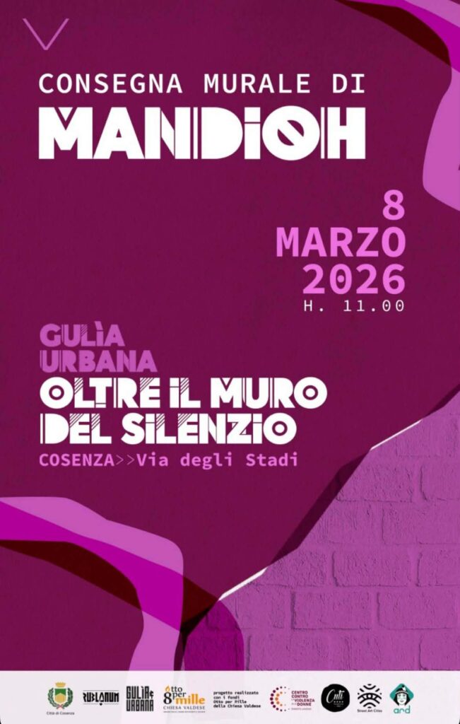 Domenica 8 marzo alle 11,00, a via degli stadi, sarà inaugurato il murales dell’artista basca Mandioh nell’ambito del progetto realizzato con Gulia Urbana “Oltre il muro del silenzio”.