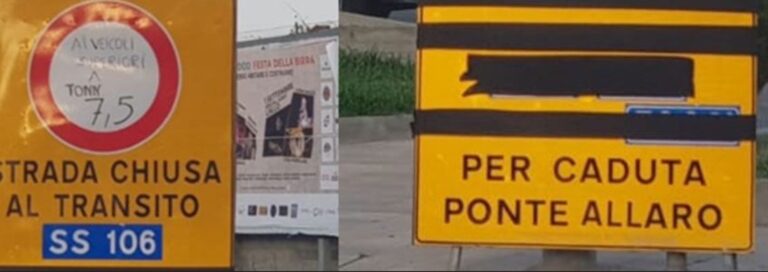 Divieto di accesso per ācaduta ponteā. Il cartello Anas sullāAllaro ĆØ una barzelletta