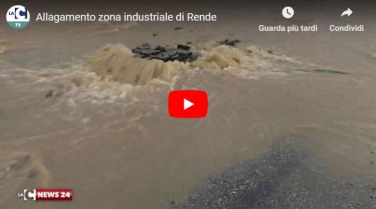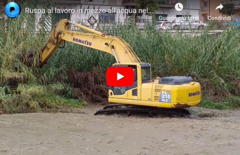 Maltempo a Cosenza, escavatore in azione in mezzo all’acqua nel torrente Campagnano (VIDEO)