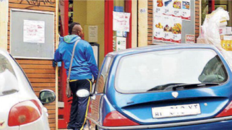 Cinque africani litigano per le elemosine