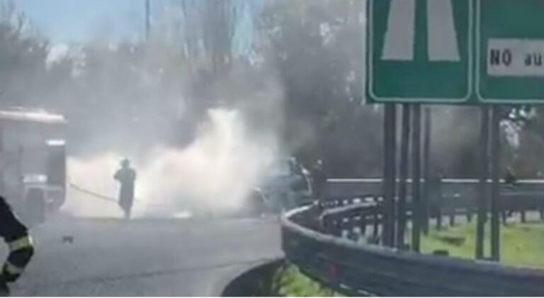 Furgone in fiamme nei pressi dello svincolo autostradale di Cosenza Nord