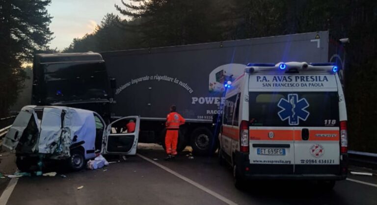 Grave incidente in Sila: ambulanza interviene, ma causa ghiaccio si scontra con il TIR