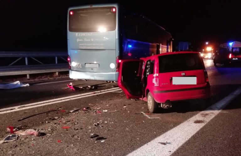 Tragico incidente questa notte sull’A2, scontro frontale pullman-auto a Rosarno
