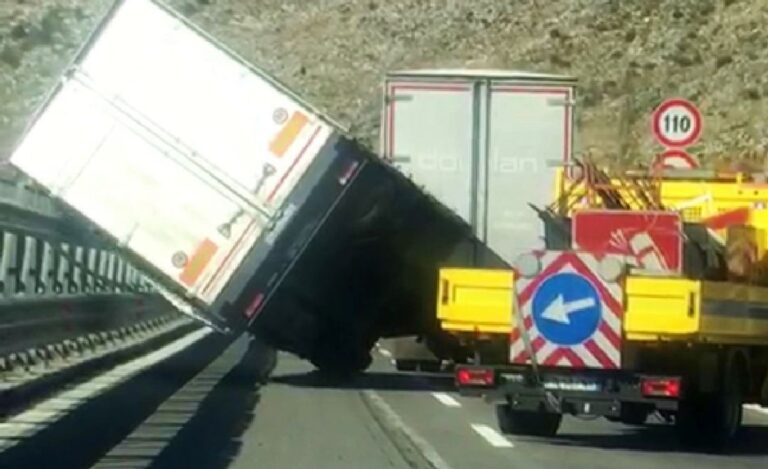 Forte vento a Castrovillari e nel Pollino, si ribalta il rimorchio di un tir: traffico in tilt in autostrada