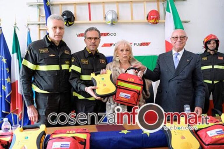 Cosenza, la Bcc Mediocrati dona sette defibrillatori ai vigili del fuoco