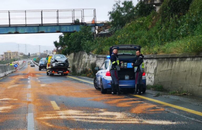 Olio sull’asfalto, dieci auto sbandano in autostrada: traffico bloccato fra Villa e Gallico
