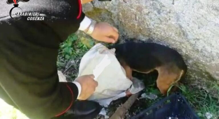 Cucciolo di cane chiuso in un sacchetto e abbandonato tra i rifiuti
