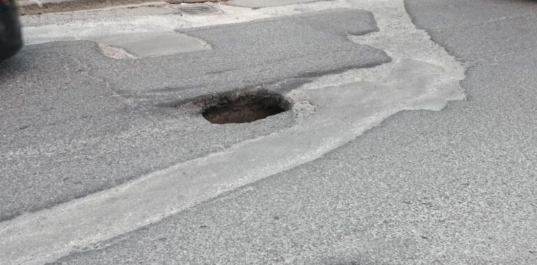 Cede lāasfalto di piazza Europa, profonda buca in centro cittĆ
