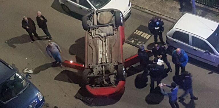 Brutto incidente a Cosenza, auto ribaltata