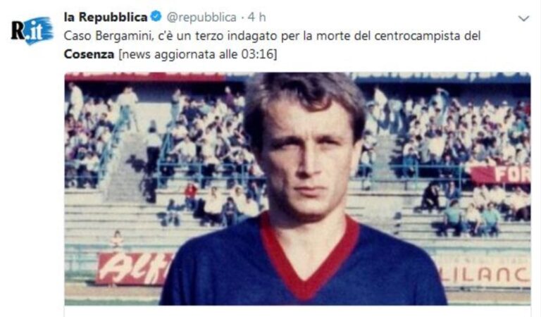 Repubblica: “Caso Bergamini, c’ĆØ un terzo indagato per la morte del centrocampista del Cosenza”