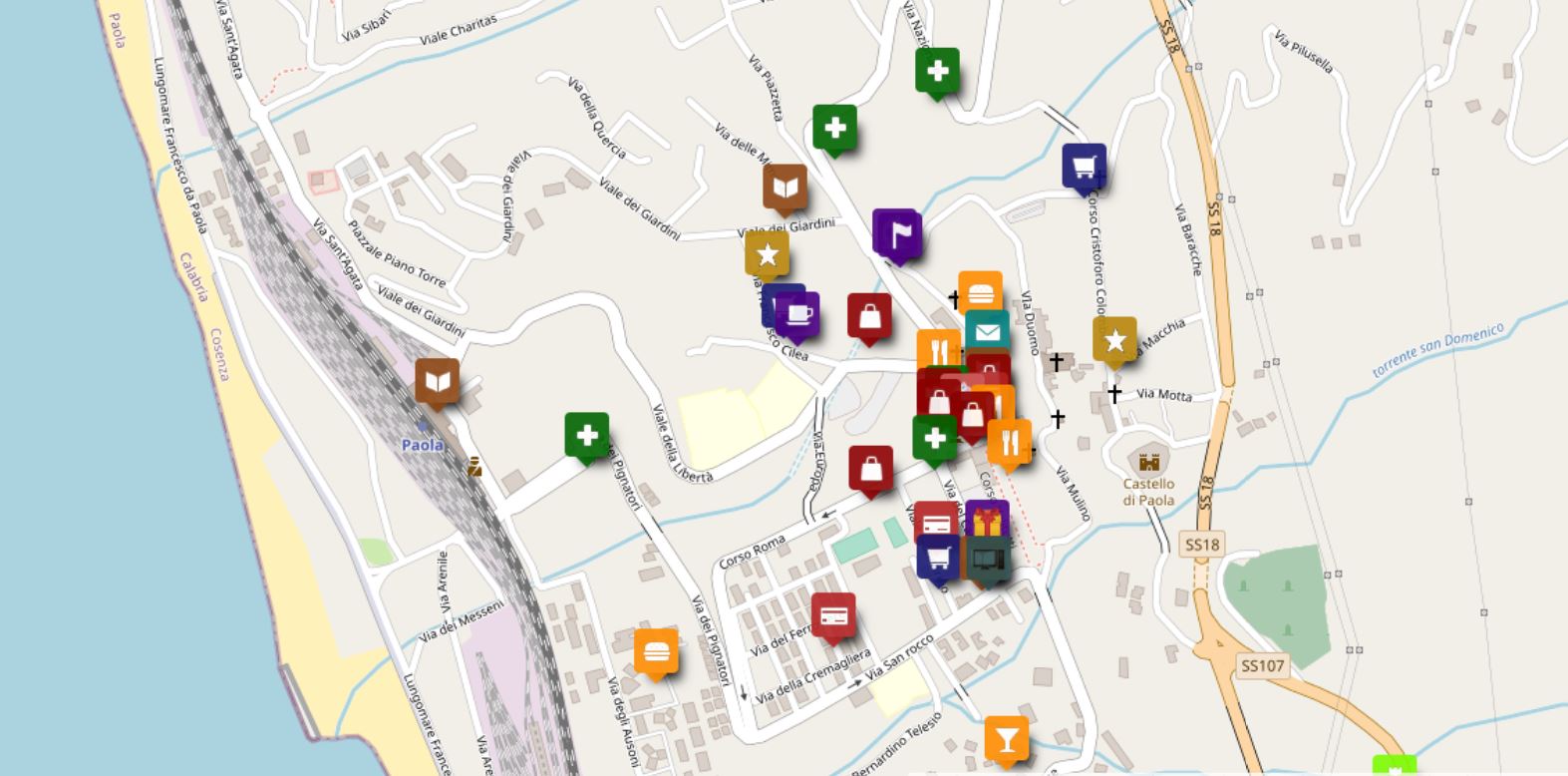 Si ribadisce che il servizio è totalmente gratuito per tutti: pertanto, si invitano i proprietari di attività commerciali, studi medici e servizi vari del territorio che volessero aderire, a visitare la pagina Facebook di Paola InMaps per avere maggiori informazioni. A tutti i cittadini che volessero usufruire del servizio, si ricorda che la mappa è attualmente visualizzabile al link https://u.osmfr.org/m/448826/ e che, per come anticipato, da oggi è possibile anche scaricare la relativa App dal PlayStore di Android.“