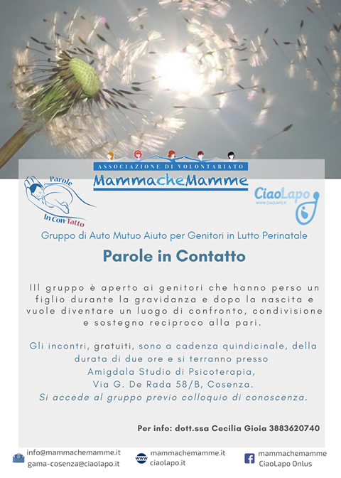 “Promosso dall’Associazione di Volontariato MammacheMamme, centro di riferimento calabrese per le famiglie che hanno subito un lutto perinatale e convenzionata con l’Associazione CiaoLapo Onlus.