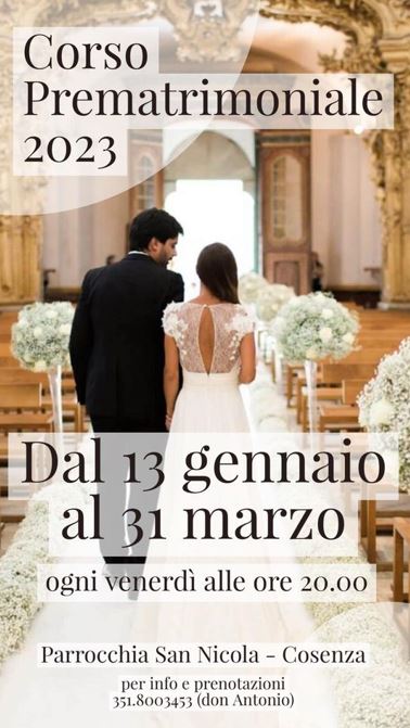 Il corso prematrimoniale inizierà venerdì 13 gennaio e si concluderà venerdì 31 marzo
