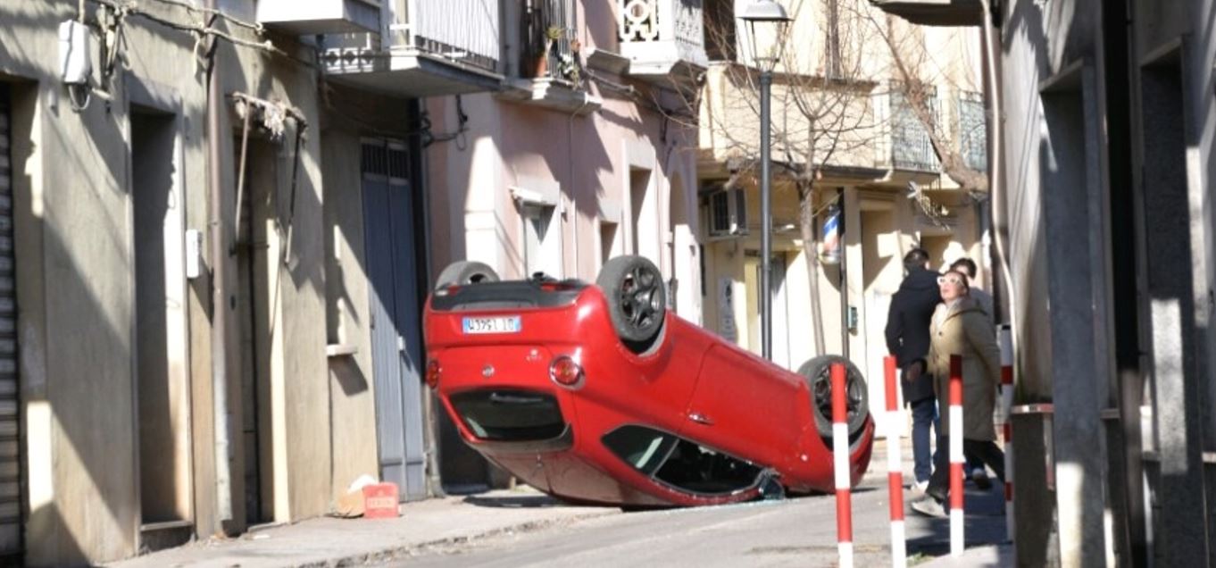 Paura a Castrovillari, auto si capovolge in una strada stretta