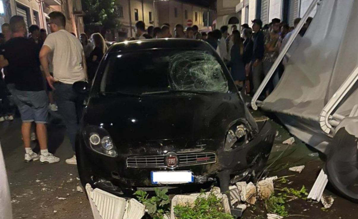 “È accaduto nella notte tra sabato e notte, poco prima delle 2, quando un’autovettura del tipo Fiat Punto di colore scuro, per cause in corso di accertamento, s’è schiantata contro l’isolotto di via Roma del più rinomato quanto celebre bar Modernissimo. Saranno otto i ragazzi che il 118 soccorrerà e trasferirà nell’ospedale”