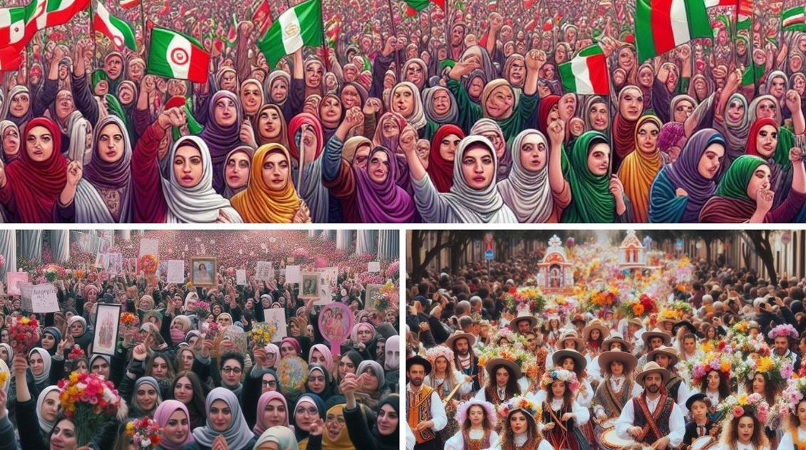 “Il risultato è stato sconfortante: una folla di donne velate col pugno alzato e altre, sempre coperte dalla testa ai piedi, che sventolano bandiere che ricordano quella iraniana, che ha comunque gli stessi colori di quella italiana ma disposti in bande orizzontali. Inoltre, l’IA ha tirato fuori un’altra immagine di donne urlanti, tutte rigorosamente vestite in lunghi e sgargianti abiti tradizionali, questa volta a capo scoperto ma pronte a ballare la tarantella.”