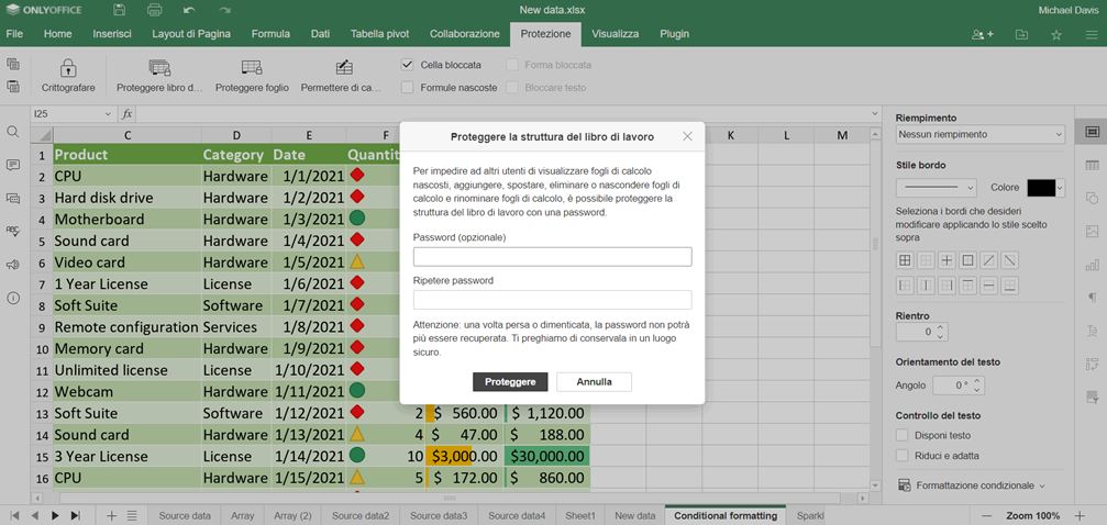 ONLYOFFICE punta sulla protezione e sulla privacy per mantenere i tuoi dati sempre al sicuro. A parte varie funzionalità disponibili subito nell’editor (protezione con password, supporto per la firma digitale, filigrane, Private Rooms e altro ancora), con l’API si può limitare la copia, il download e la stampa dei file. Mentre la crittografia end-to-end e JWT proteggono i dati sensibili da accessi non autorizzati.