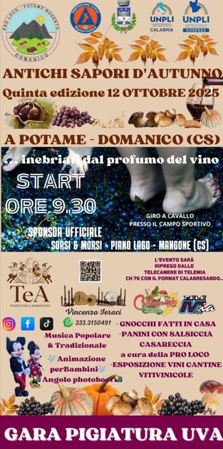 Tra stand gastronomici, prodotti tipici locali, musica popolare e momenti di animazione per grandi e piccoli, la Festa d’Autunno celebra le eccellenze del territorio in un’atmosfera calda e accogliente. Non mancheranno le castagne, il vino novello, dolci della tradizione e piatti tipici calabresi preparati con amore.