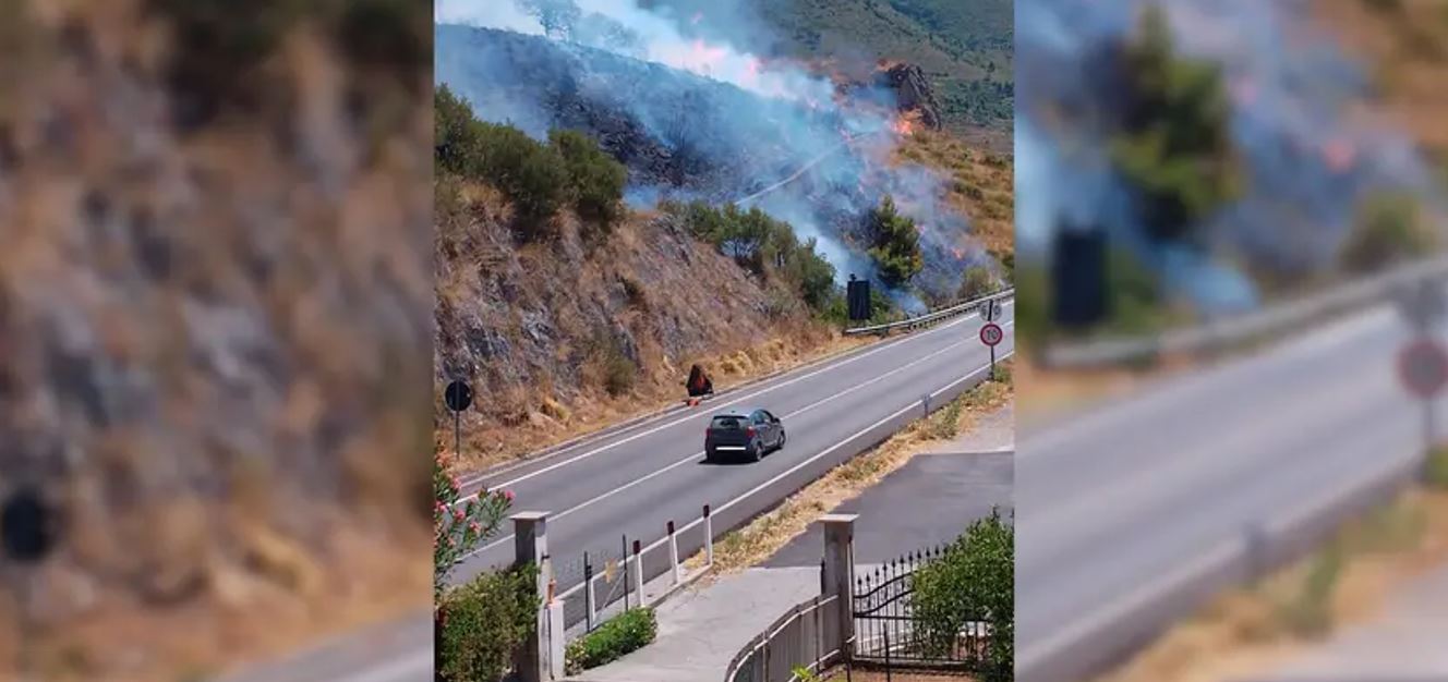 Un vasto incendio è divampato intorno le 12.10 sulla collinetta che sovrasta il tratto della ss18 all’altezza di Praia a Mare