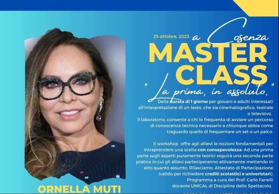 “Per questa occasione un primato in assoluto, perché a tenere il corso sarà l’attrice Ornella Muti che ad oggi non hai mai tenuto un master class.