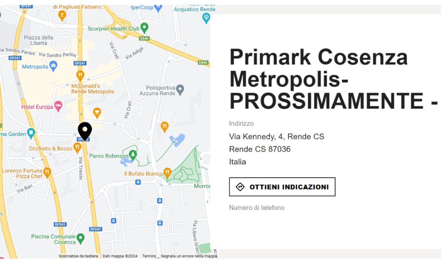 “Ormai non ci sono più dubbi. Primark aprirà a Rende, precisamente nel Centro Commerciale “Metropolis”. L’ufficialità arriva direttamente dall’azienda irlandese che sul proprio sito ha finalmente inserito l’annuncio dell’apertura del nuovo store associando la parola “Prossimamente“.”