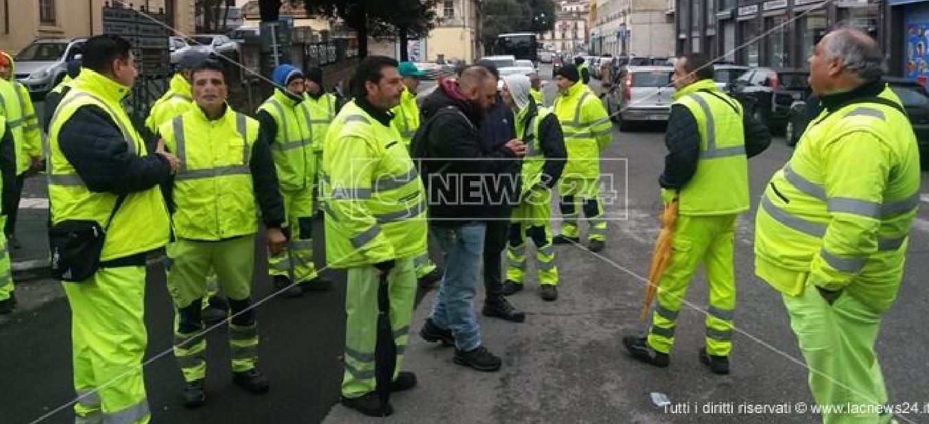 “Sospesa la raccolta dalla giornata di ieri. I lavoratori rivendicano gli stipendi arretrati. Hanno prima bloccato il traffico, poi hanno occupato il salone di rappresentanza del Comune”