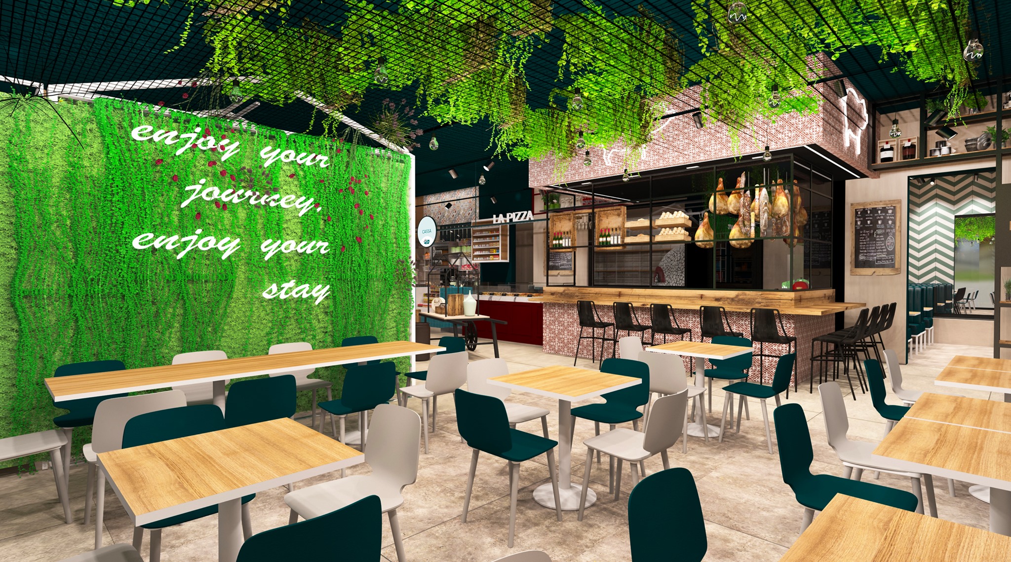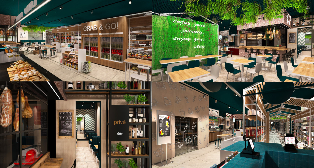 I locali ristoro saranno ingranditi in maniera significativa e realizzati con design moderno e funzionale, nuovi arredi, materiali e colori in linea con il mood QuattropuntoZero.