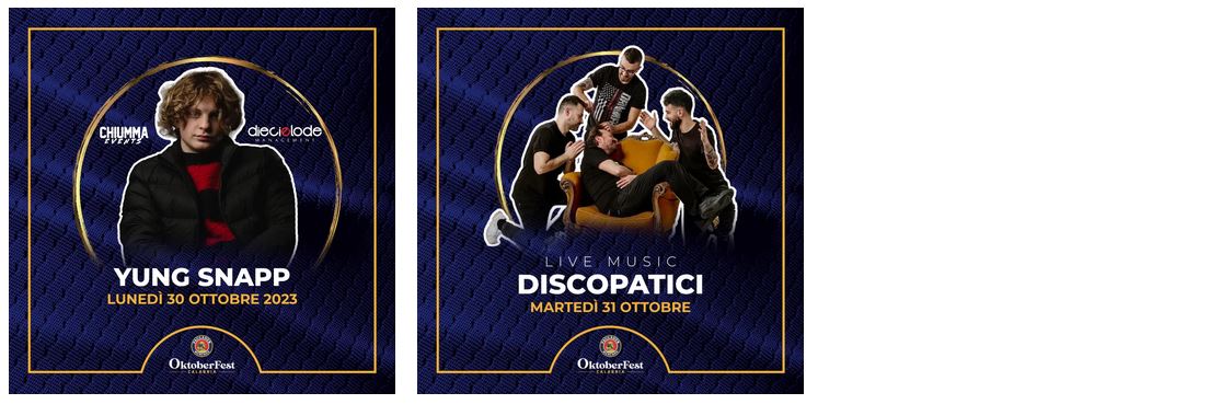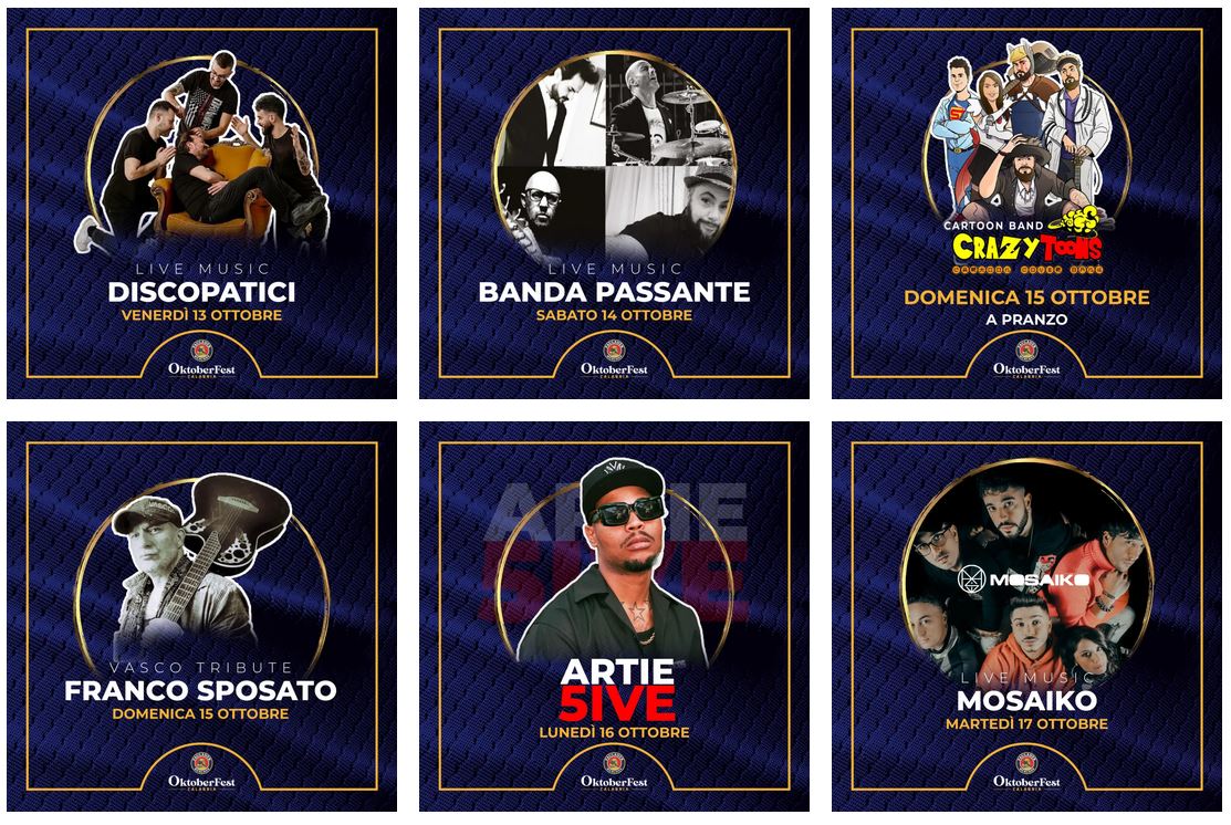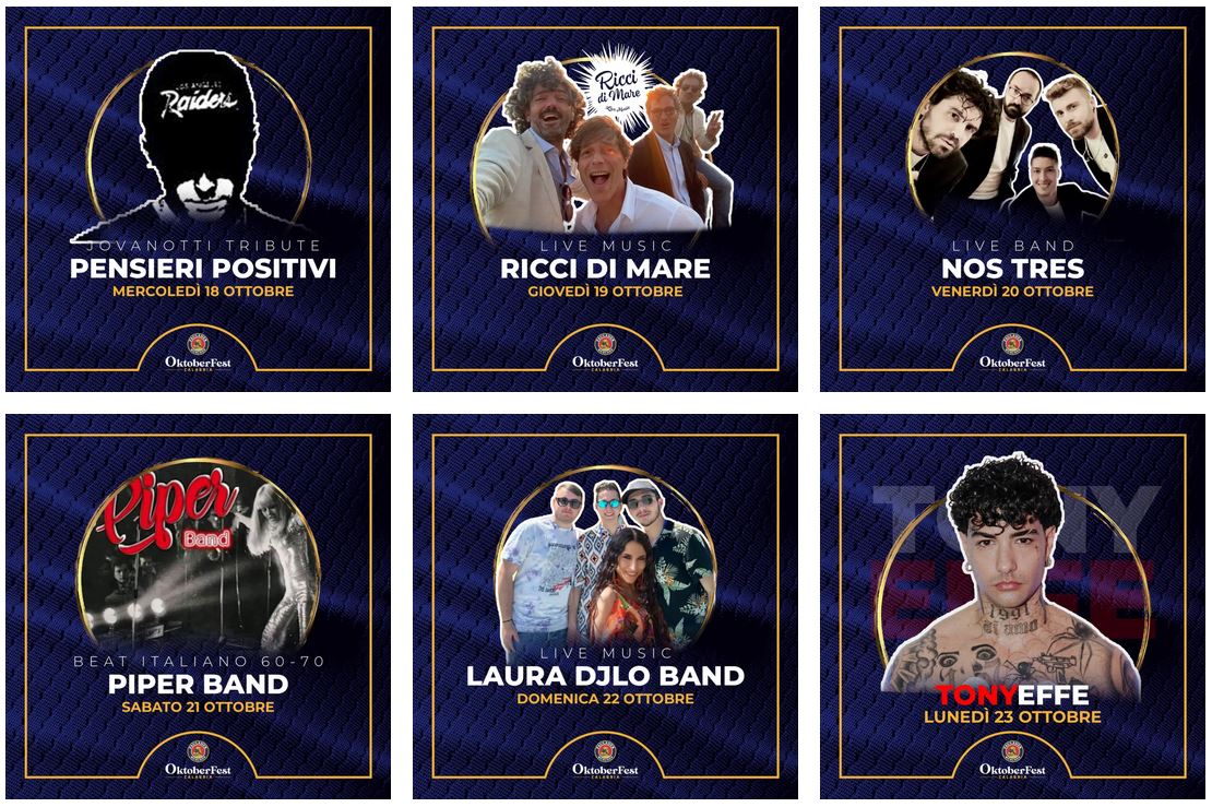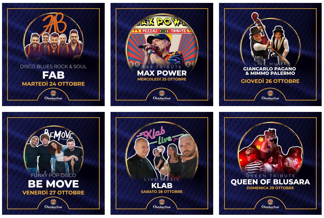All’interno della tradizionale festa della birra che prenderà il via il 13 ottobre a Rende, la musica è stata sempre importante, quasi tanto quanto la birra stessa. All’OktoberFest Calabria, oltre a bere e mangiare, la serata viene scandita da canti e balli che ricreano la proverbiale atmosfera della Wiesn: la banda di ottoni intona i brani più famosi e le canzoni tipiche dell’Oktoberfest che fanno parte della tradizione bavarese, oltre ai classici e alle hit internazionali.