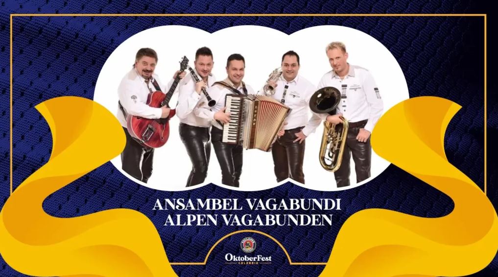 Ritorna in esclusiva mondiale per l’OktoberFest Calabria l’allegria dei prosit cantanti dalla famosa band “Alpen Vagabunden”, che si esibirà in costume tipico durante tutte le serate di questa quarta edizione, con i tipici e coinvolgenti brani della tradizione bavarese, ma anche con le cover di tanta musica pop internazionale e di famosi brani arrangiati in stile folkloristico.