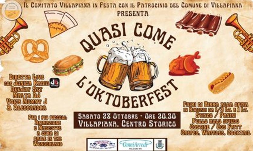 Sabato 28 ottobre il Comitato “Villapiana in Festa organizza la festa della birra denominata “Quasi come l’Oktoberfest”