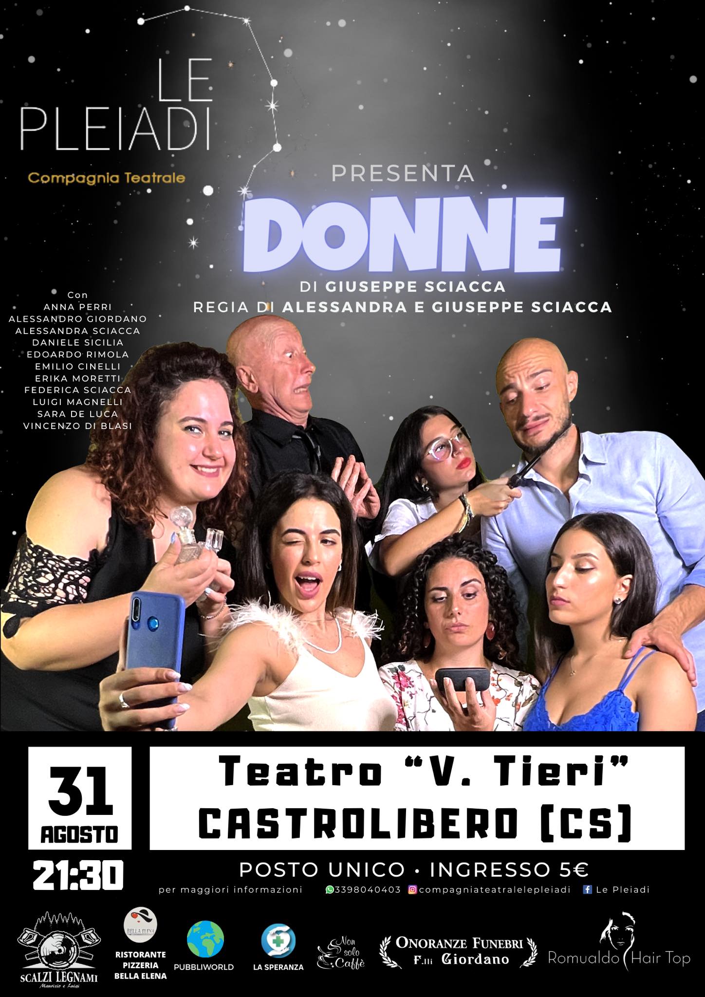 Stasera andrà in scena lo spettacolo DONNE, una commedia comico brillante in atto unico.