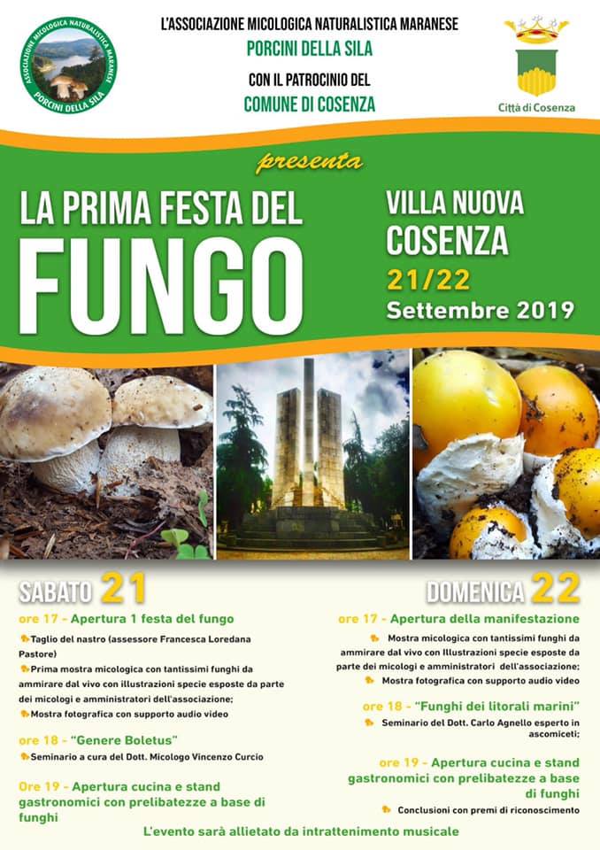 “Sarà la Villa Nuova di Piazza della Vittoria ad ospitare la prima edizione della Festa del Fungo, promossa dall’Associazione micologica naturalistica maranese “Porcini della Sila” con il patrocinio del Comune di Cosenza.