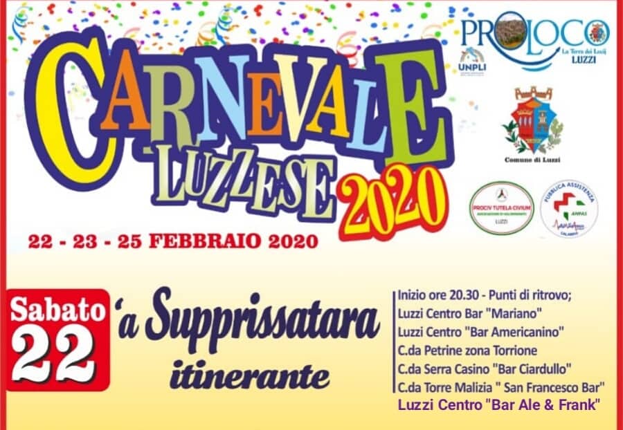 “Dopo varie edizioni quest’anno il bellissimo canto di tradizione cambia modalità. I gruppi non si sfideranno in una gara come un tempo si faceva nei rioni del paese, ma andranno in giro a fare ascoltare a tutti la Supprissatara. Quest’idea nasce dal fatto che purtroppo, questo antico canto, che porta gioia nelle case, in molte contrade non viene più intonato da diversi anni, tanto tempo fa a Carnevale in paese si contavano circa 10 gruppi per volta, ora non più…. La supprissatara quest’anno viene riproposta in una veste nuova, viene cantata per le strade, per i rioni, per le contrade di Luzzi, per farla ascoltare a tutti, grandi, piccini e anziani, in un’ora in cui le famiglie non sono ancora andate a letto.