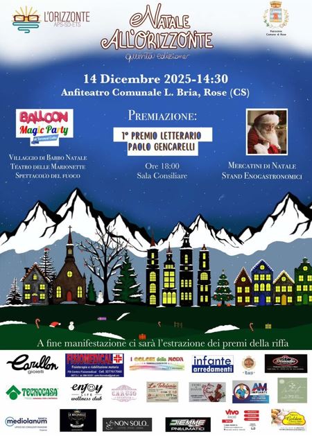 L’associazione l’Orizzonte Aps-Sd-Ets, con il patrocinio del Comune di Rose, è lieta di annunciare la quinta edizione della manifestazione “Natale all’Orizzonte”