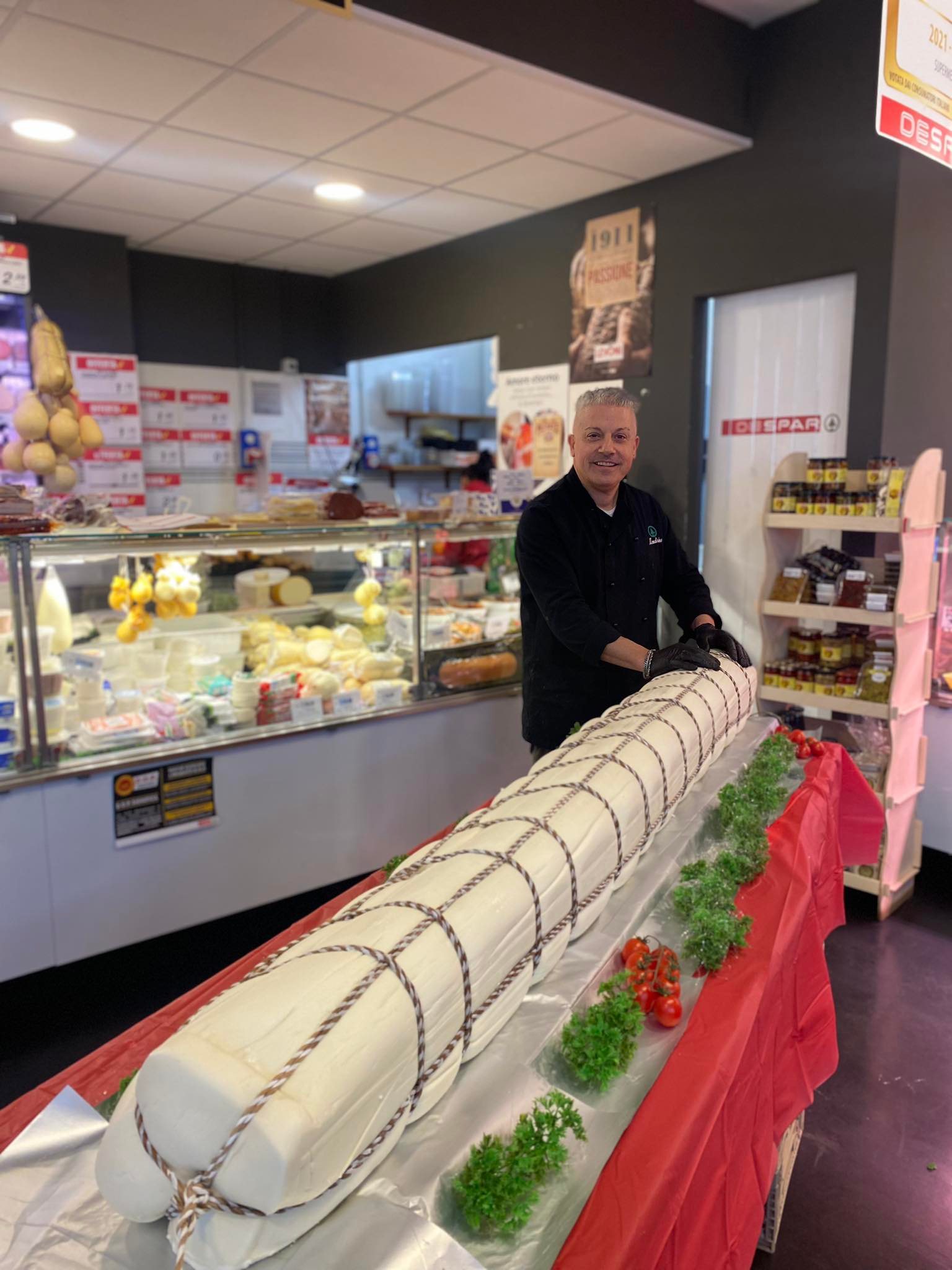 “Siamo gli unici ad avere l’onore di ospitare questo gioiello in casa, fatto completamente a mano, di tutto latte. Il nostro Giuseppe ne ha fatto già altri, ma qui ogni volta che scarica da noi fa un nuovo record. Prima ha portato quello enorme da 55kg, oggi si è superato con il nuovo record di 77kg di pura bontà“