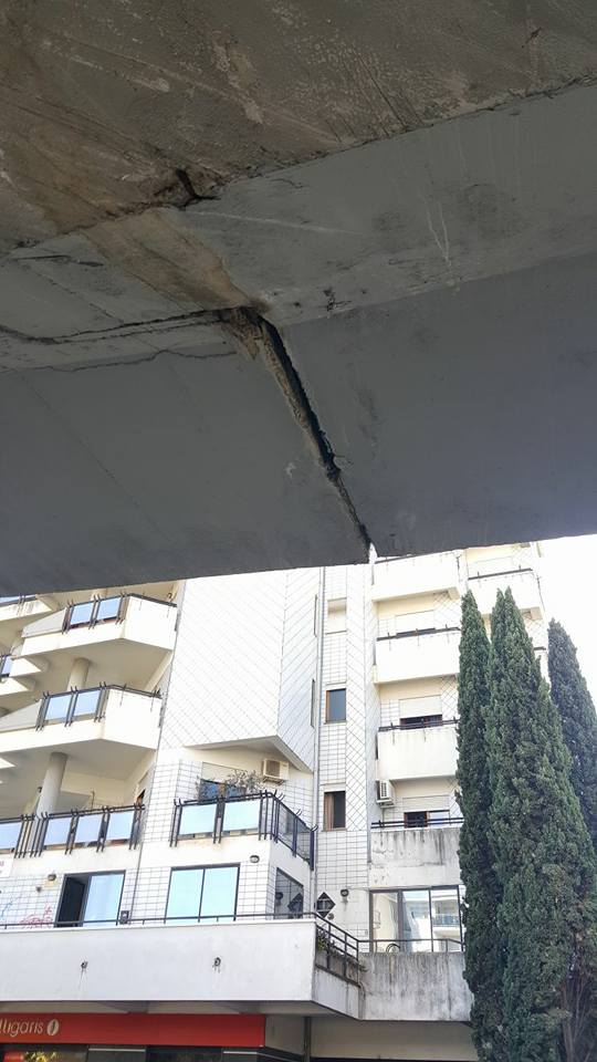 Cadono calcinacci dai giunti della sopraelevata della SS 107 (altezza negozio di giocattoli) a Rende.